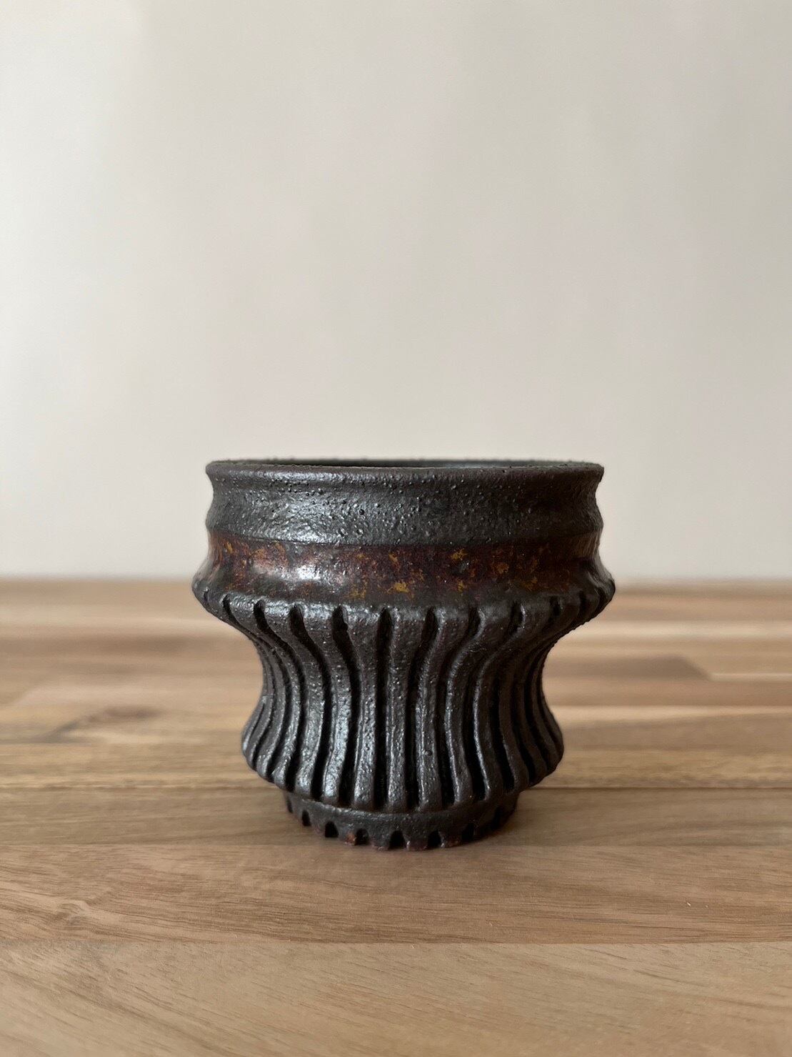 泥土に含まれる成分により彩られた鉢は無二の質感を持つ。