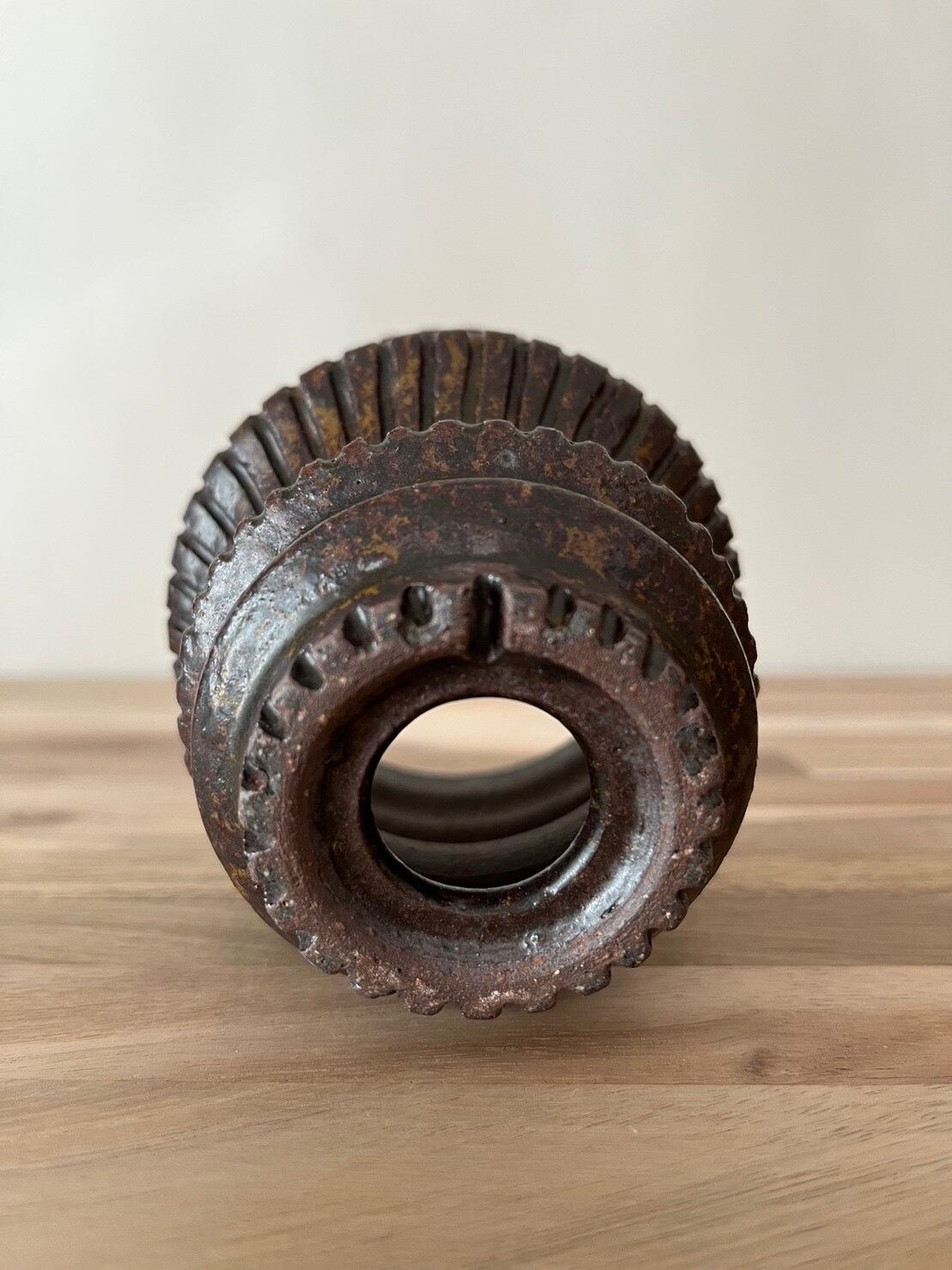 裏を覗くと足の部分を歯車型に彫り込んだ遊びがあります。