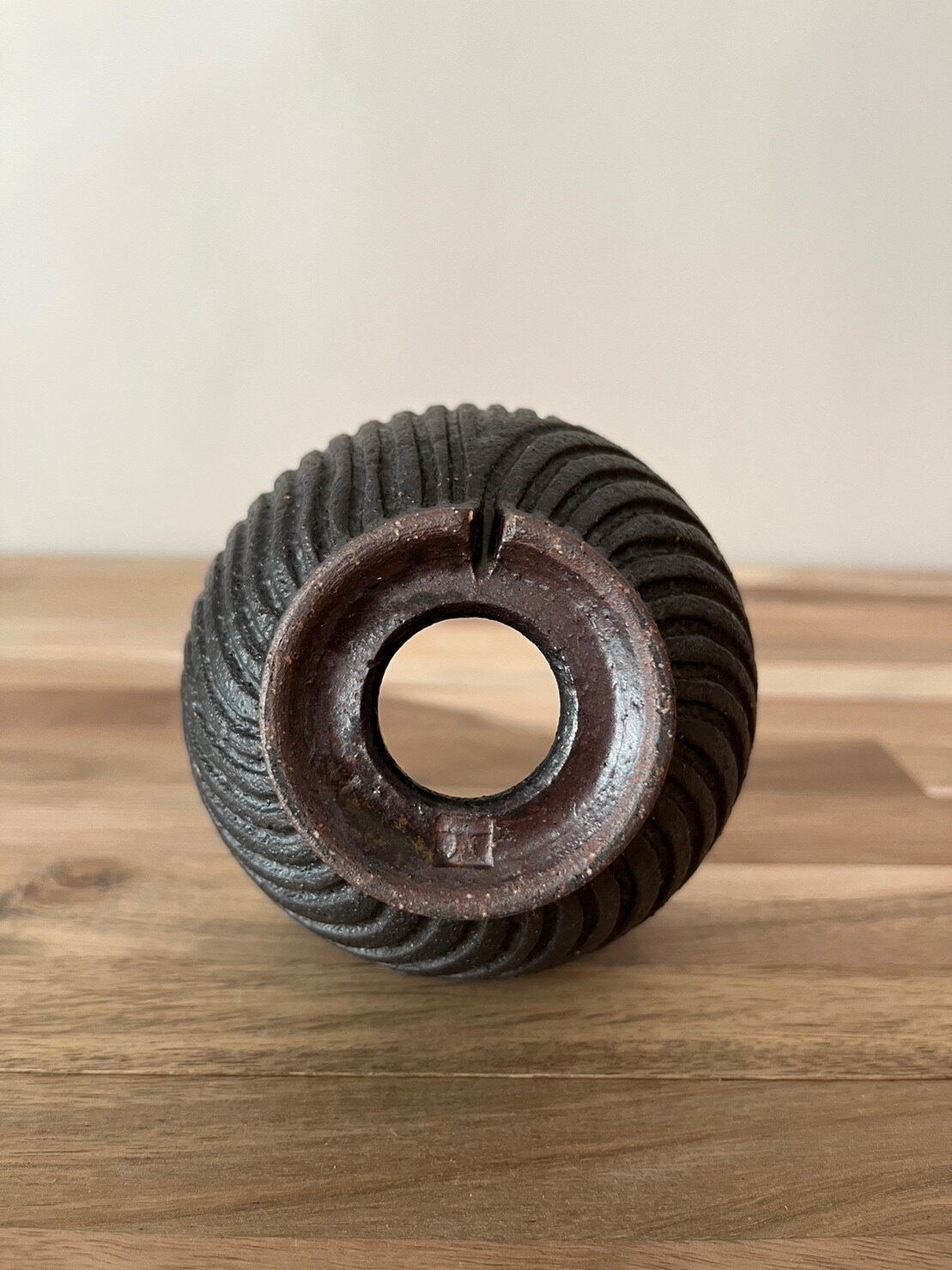 泥土に含まれる成分により彩られた鉢は無二の質感を持つ。