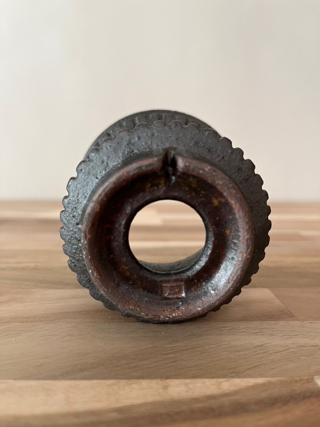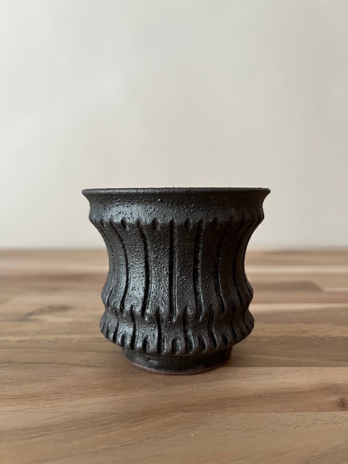 泥土に含まれる成分により彩られた鉢は無二の質感を持つ。