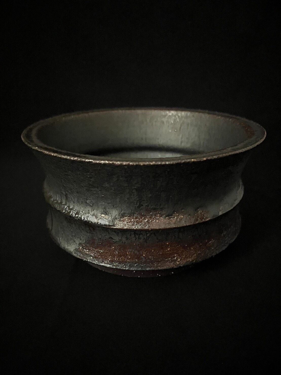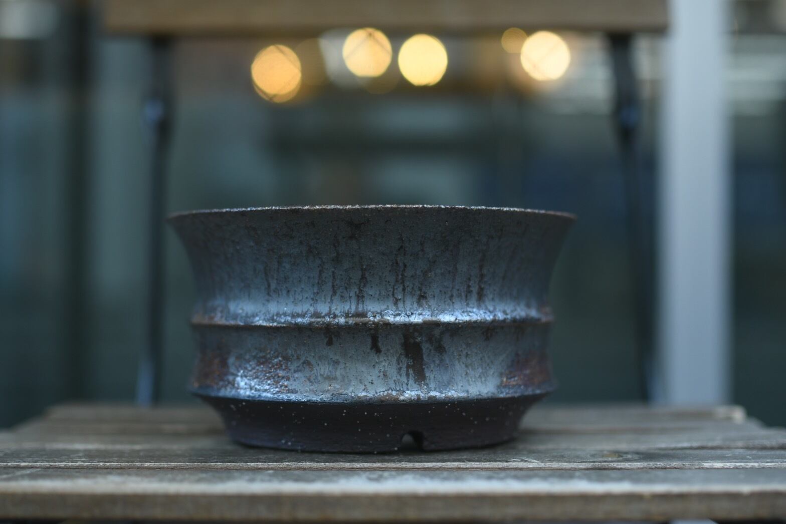 金属のような鈍い光を放つ特別な釉薬、光彩釉使用した陶器鉢。
